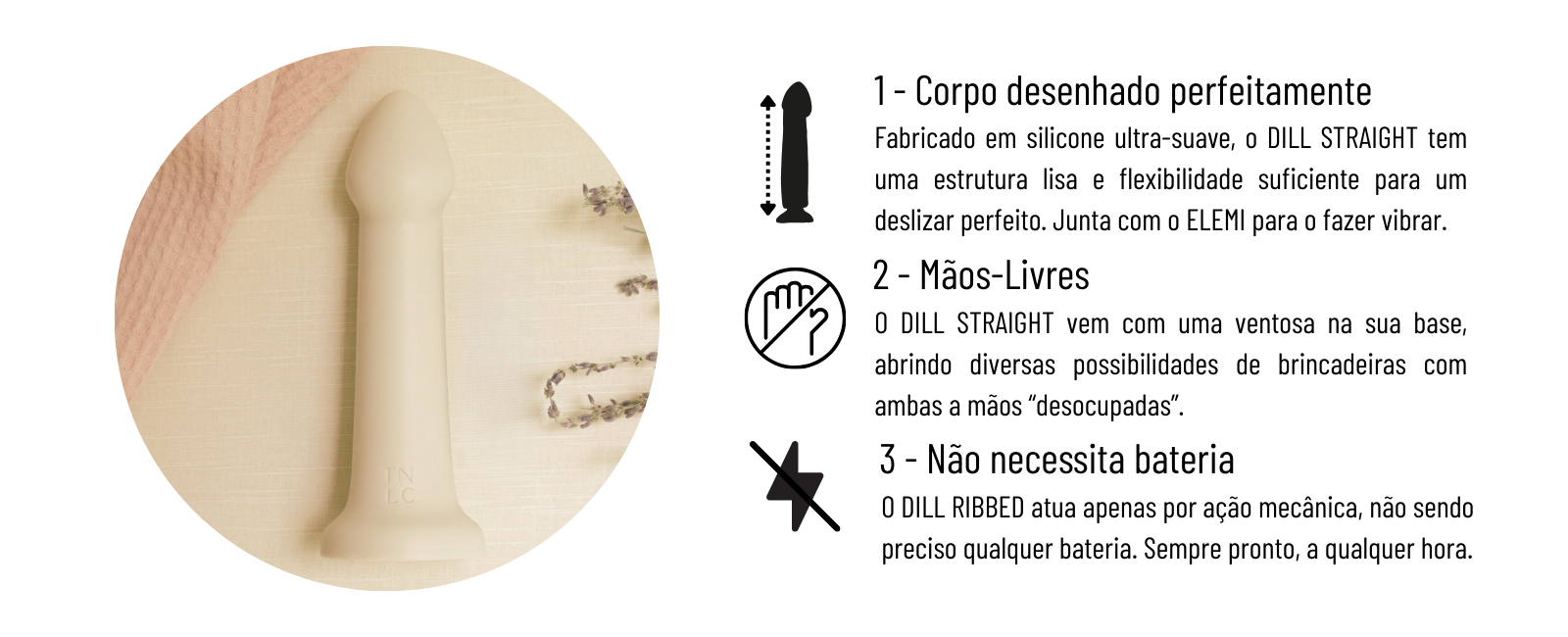 Mas o Dill guarda um segredo delicioso: foi desenhado com uma cavidade na base para que possas inserir o Elemi, o vibrador bullet fabricado a partir de plástico reciclado dos oceanos. Com apenas uma gota de lubrificante, o Elemi encaixa na perfeição, transformando o Dill num vibrador oscilante de intensidade surpreendente. Uma fusão entre consciência ecológica e prazer absoluto.