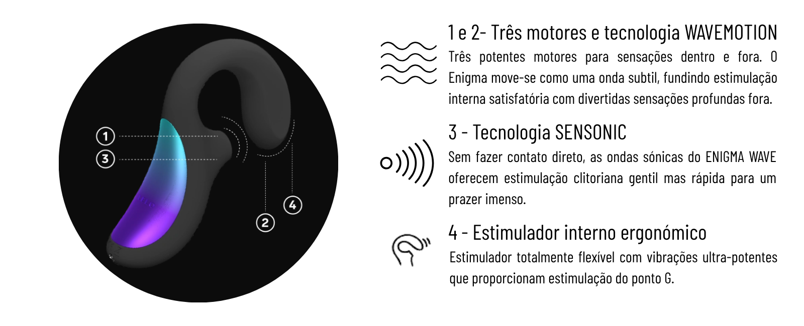 O LELO Enigma™ Wave não é apenas um brinquedo sexual - é uma ode à sensualidade feminina, uma fusão requintada de tecnologia e instinto, concebida para tocar-te por dentro e por fora, em perfeita harmonia.