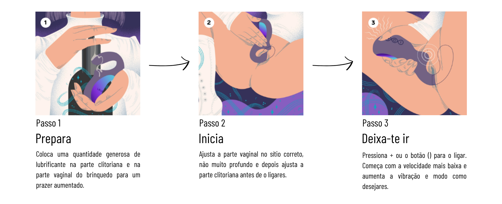 Com suavidade, sem pressa, apenas o suficiente para que a sua forma se encaixe naturalmente. Deixe que a ponta externa repousa sobre o ponto de prazer — onde o toque é sempre mais intenso.