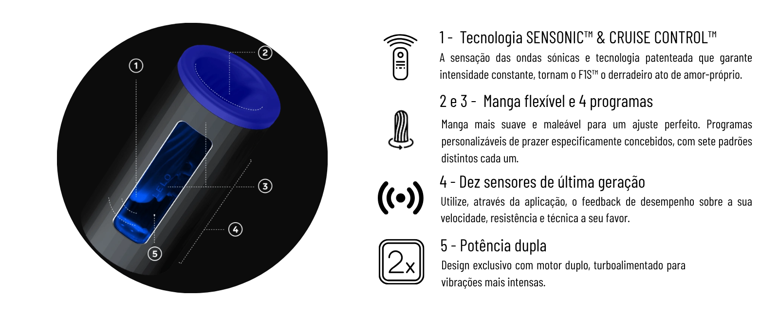 Graças à tecnologia SenSonic™, sentirás ondas sónicas profundas que envolvem todo o teu corpo, enquanto o Cruise Control™ mantém a intensidade perfeita em cada movimento. Com dois motores potentes, quatro modos distintos e uma manga interior flexível em silicone premium, o F1S V2 adapta-se a ti e ao teu ritmo.