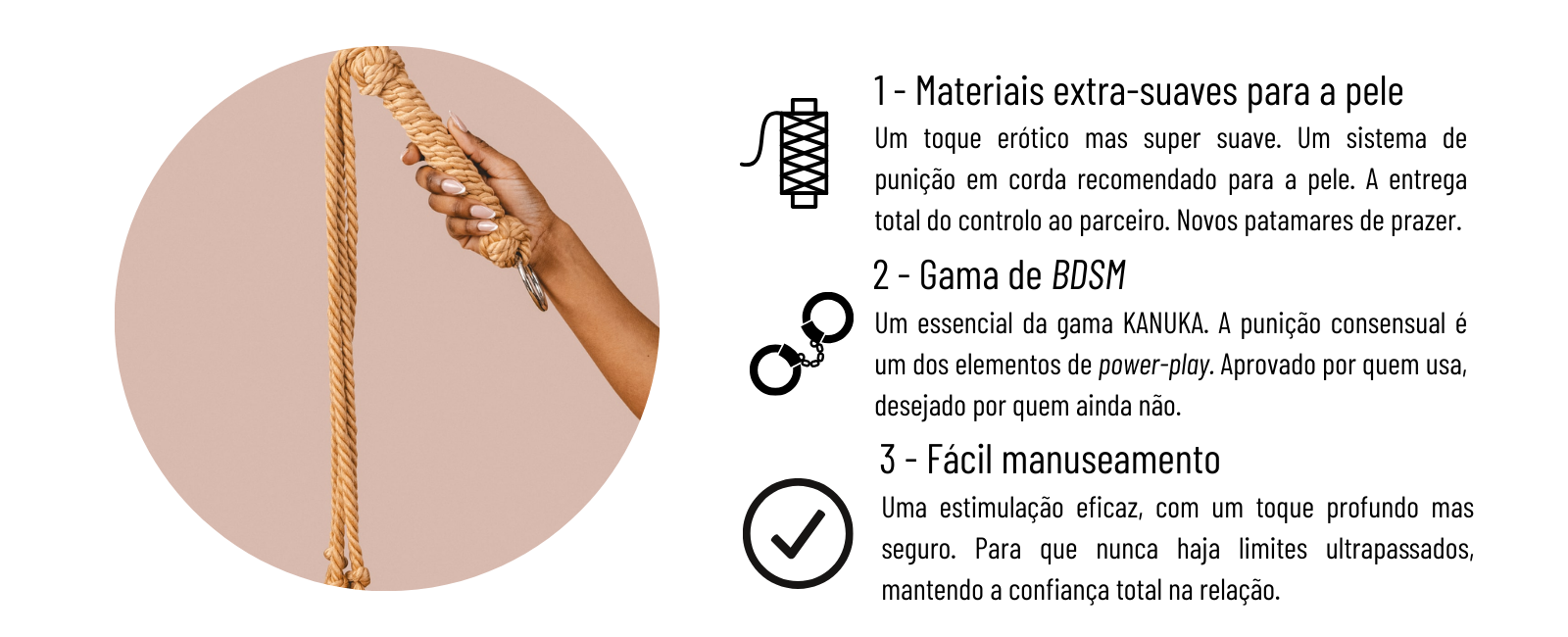 O Kanuka Flogger Whip é a expressão perfeita da arte da sedução e do prazer a dois. Com borlas delicadas e acabamento de alta qualidade, este flogger combina elegância e intensidade, ideal para quem quer explorar o jogo de poder e entrega com requinte. Perfeito para despertar sensações, aguçar a pele e elevar o desejo, transformando cada toque num convite irresistível ao prazer.