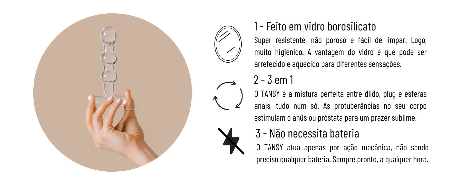 Feito em vidro borossilicato, um material resistente e seguro, o Tansy desliza suavemente com uma simples aplicação de lubrificante, oferecendo uma estimulação firme e precisa. O vidro é não poroso, tornando-o ultra-higiênico e fácil de limpar. Além disso, permite brincar com a temperatura: arrefece para uma sensação fresca ou aquece para um toque quente e envolvente.