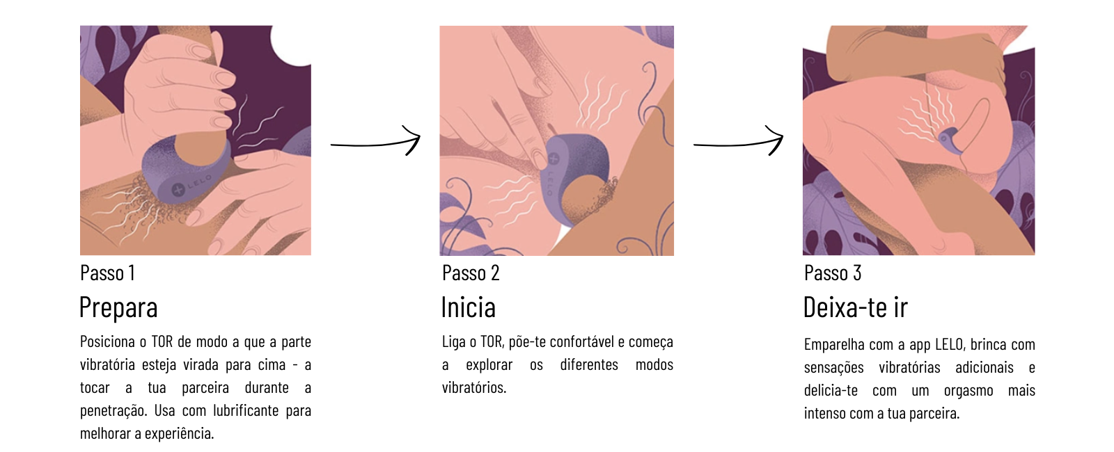 Desliza o TOR 3 até à base do pénis (erecto ou semi-erecto). O anel deve assentar confortavelmente, sem apertar em excesso.